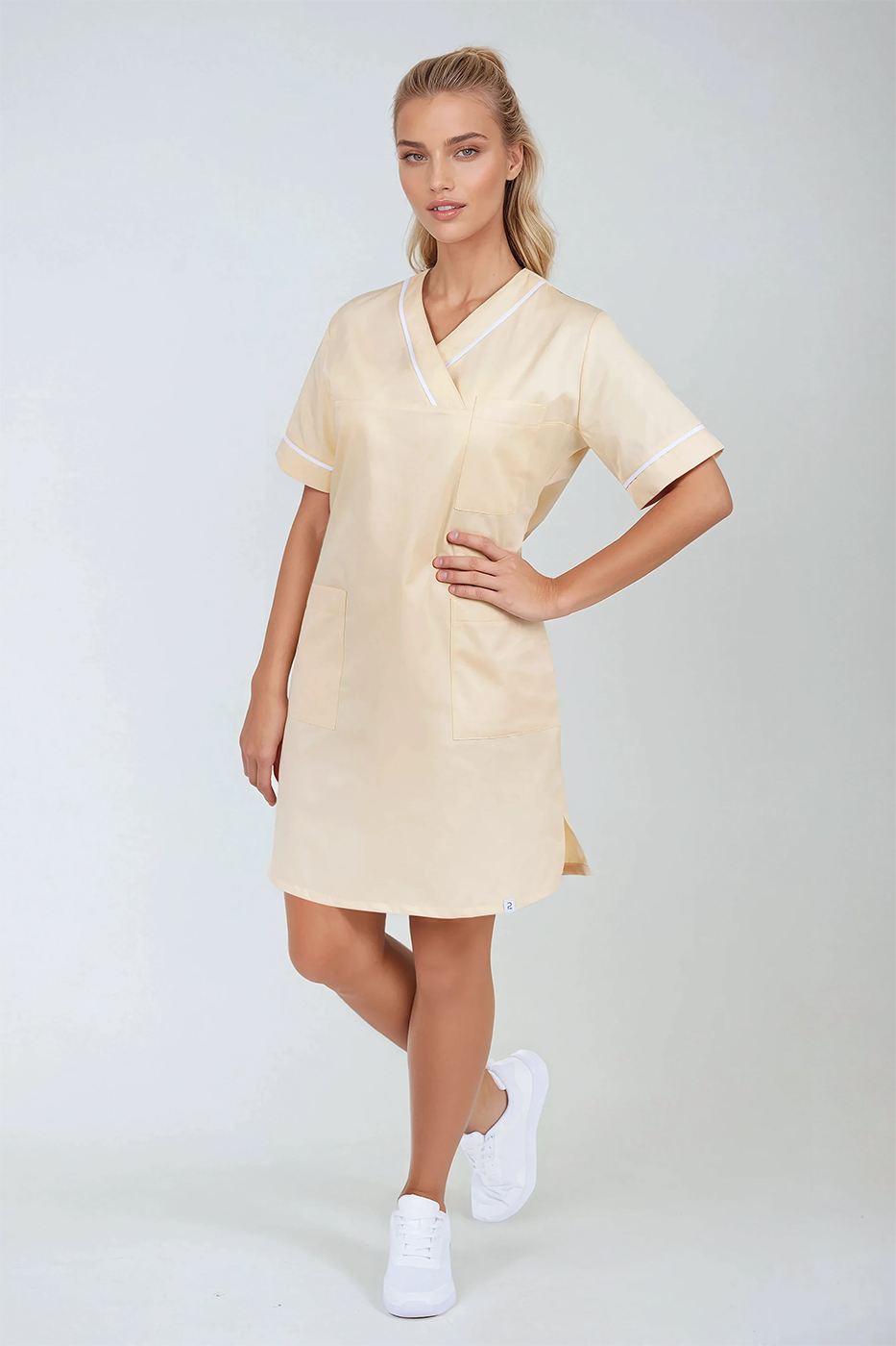 Zdravotní šaty Julia-B žluté – spojení komfortu, praktičnosti a stylu ve zdravotnickém oděvu