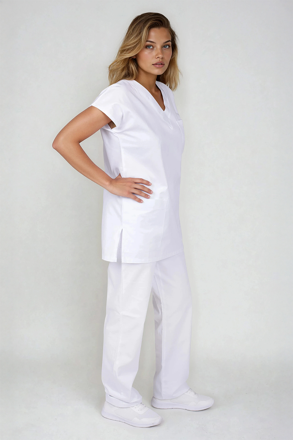 Zdravotnická halena Unima Star je vyrobena ze 100% vysrážené bavlny o gramáži 165g/m², což zajišťuje ideální rovnováhu mezi lehkostí a odolností. Bavlna je přírodní materiál, který vyniká vysokou prodyšností, výbornou savostí a je šetrný k citlivé pokožce. To ocení zejména ti, kdo tráví v pracovním oděvu celý den – bez nepříjemného pocitu přehřátí či podráždění pokožky.