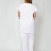 Hlavní výhodou bavlněného materiálu je jeho snadná údržba. Halenu lze prát na vysoké teploty (95°C), což zaručuje důkladné odstranění mikroorganismů a zachování dokonalé čistoty. Díky vysráženému zpracování bavlny nehrozí ztráta tvaru ani po častém praní. Materiál je dostatečně pevný, aby odolal dennímu používání, a přitom si zachovává měkkost a příjemný omak.