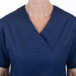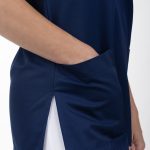 Oblékání přes hlavu je rychlé a praktické, což ocení každá žena v provozu, kde není čas ztrácet ani minutu. Výstřih do V navíc pomáhá nejen k snadnějšímu oblékání, ale i k příjemnému pocitu během dne – je vzdušný, opticky zeštíhluje a neškrtí.