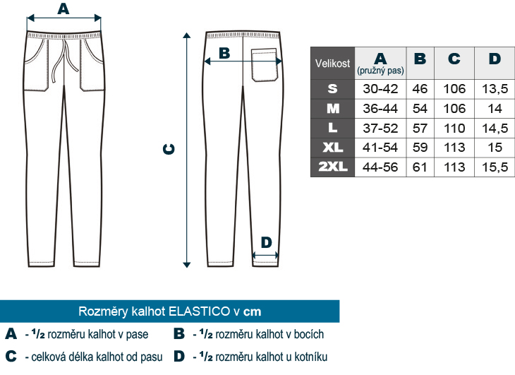 Tyto kalhoty jsou nejen praktické, ale díky jejich jednoduchému a univerzálnímu střihu si je oblíbí široké spektrum zdravotnického personálu. Navíc jsou vyrobeny ze 100% bavlny, což zajišťuje vysokou prodyšnost, přirozenou měkkost a šetrnost k pokožce.