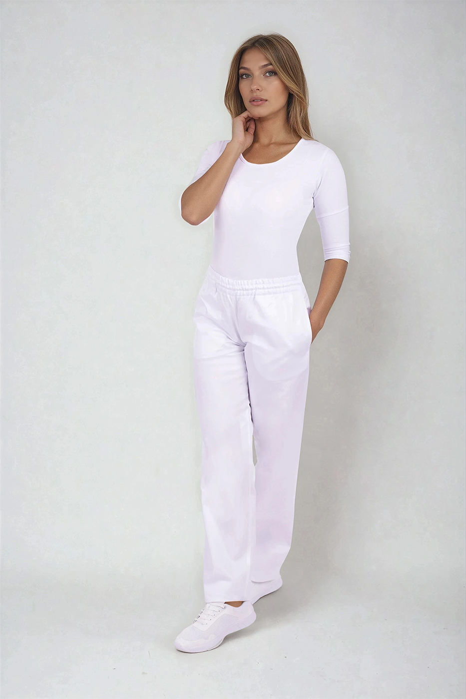 Praktickým doplňkem jsou dvě boční kapsy, které využijete na nezbytné pomůcky, kapesníky nebo jiné drobnosti, které potřebujete mít po ruce. Kalhoty perfektně ladí s halenkami či tunikami z kolekce PP Servis a jsou vhodné nejen do nemocnic a ordinací, ale i do lékáren, laboratoří nebo kosmetických provozů.