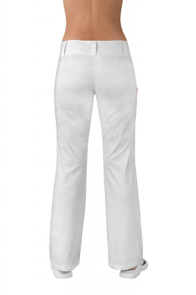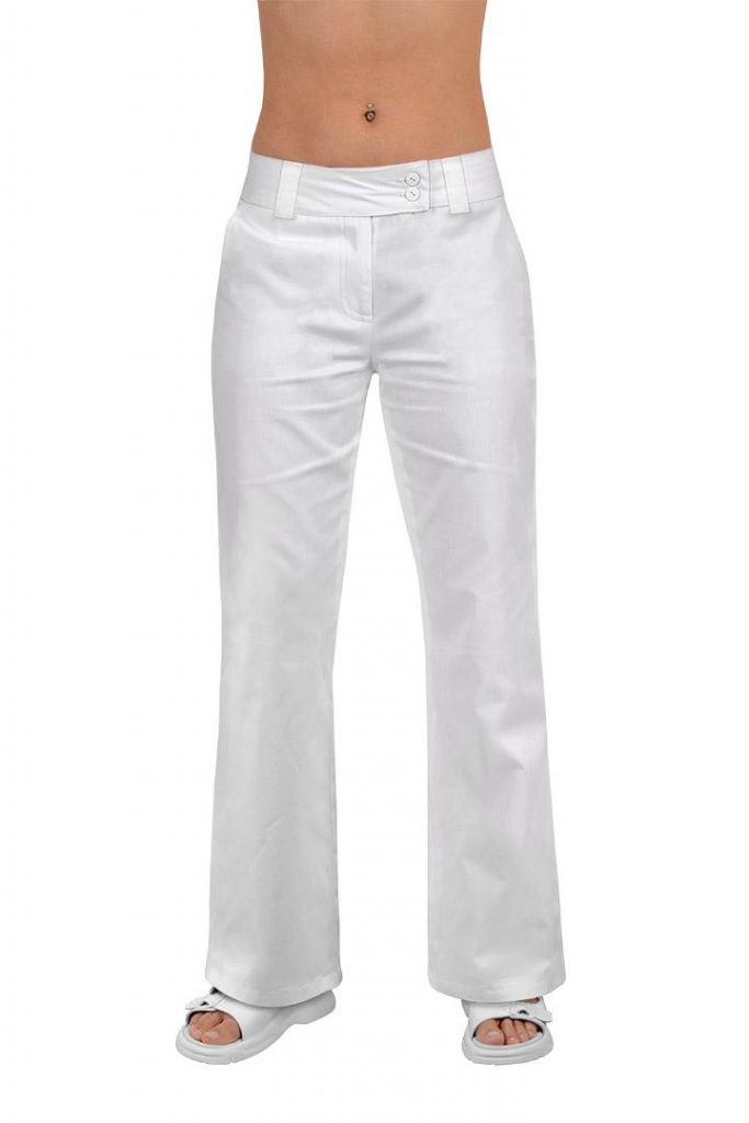 Dámské pracovní kalhoty Western mají snížený pas do boků, mírně rozšířené nohavice, zapínání vpředu na zip a netradiční zapínání na 2 knoflíky. Materiál: 97% bavlna, 3% elastan, 200g/m2.