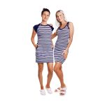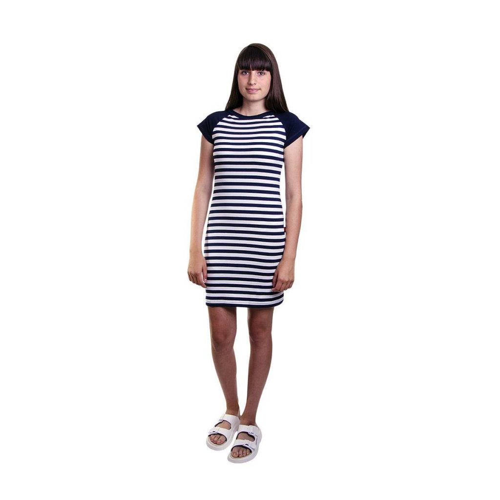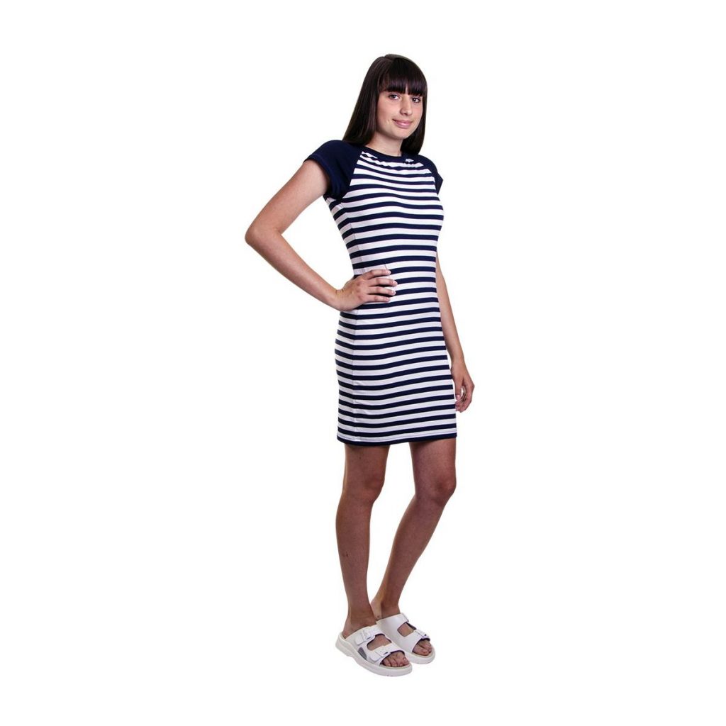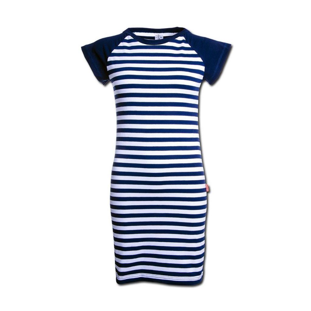 Dámské šaty Mona s modro bílým proužkem si vás získají svou elegancí a komfortností. Střih je mírně projmutý a díky příměsy elastanu vám šaty budou výborně sedět. Použitý zdravotně nezávadný materiál vás přímo pohladí po těle. Materiál: 92% bavlna, 8% elastan, 210g/m2. Praní: na 40°C.- kvalitní český výrobek