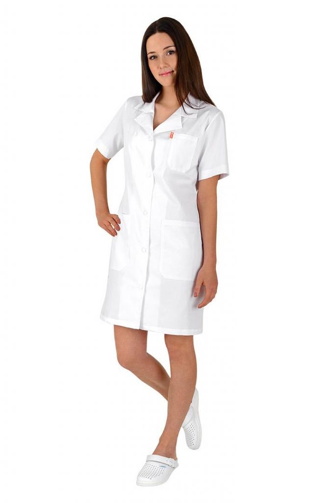 Dámský pracovní plášť v bílé barvě jistě využijete, jako profesní oděv ve zdravotnických zařízeních i gastro a potravinářských provozech. Materiál: vysrážená 100% bavlna s keprovou vazbou, 200g/m2. Praní: na 95°C.