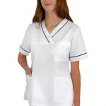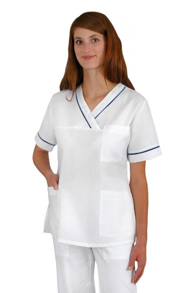 Pracovní halena Julia-B je mírně vypasovaná s rychlým oblékáním přes hlavu, na předním díle sedlové členění a 3 nakládané kapsy, barevné zdobení na krátkých rukávech a výstřihu, hladký zadní díl a rovný dolní kraj s krátkými rozparky v bočním švu. Materiál: 50% bavlna, 50% PES, sanfor. 170g/m2. Praní: na 60°C.
