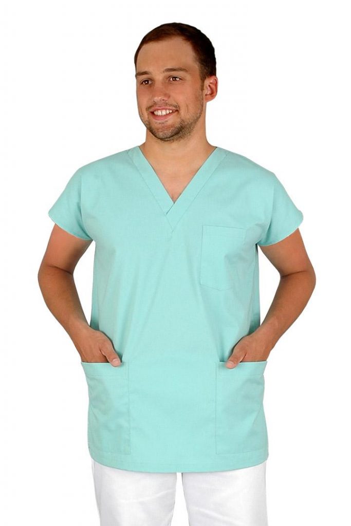 Pracovní halena Unima má rovný, unisexový střih a v přední části 3 nakládané kapsy, krátké kimono rukávy a výstřih do V. Materiál: 100% bavlna, sanfor., merc. 160g/m2.