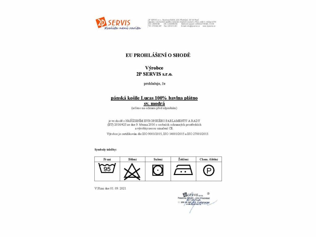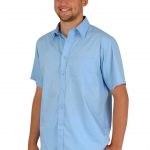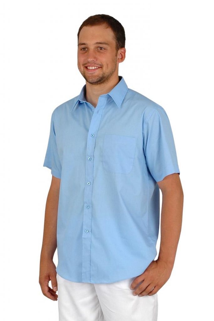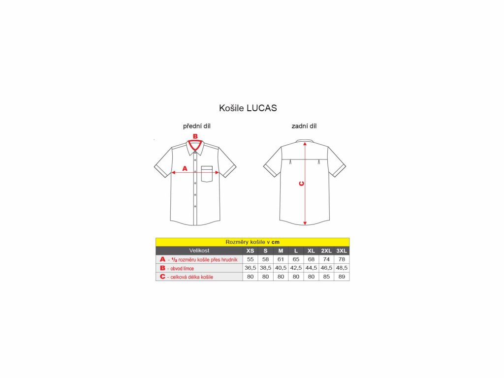 Pánská pracovní košile Lucas má dvoudílný límec, krátké rukávy, 1 nakládanou horní kapsu, zadní díl členěný dvojitým sedlem a dolní kraj tvarovaný do oblouku. Materiál 100% bavlna plátno 145g/m2.