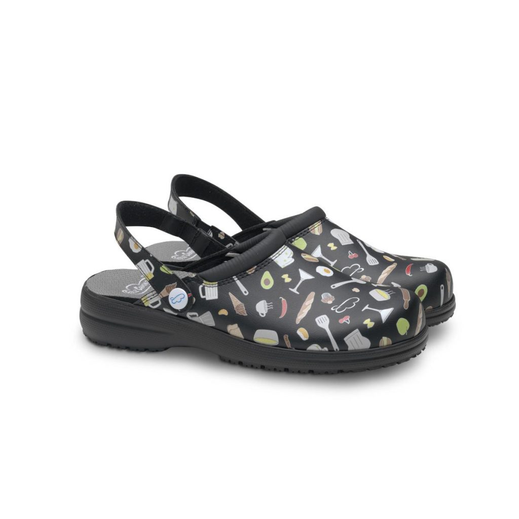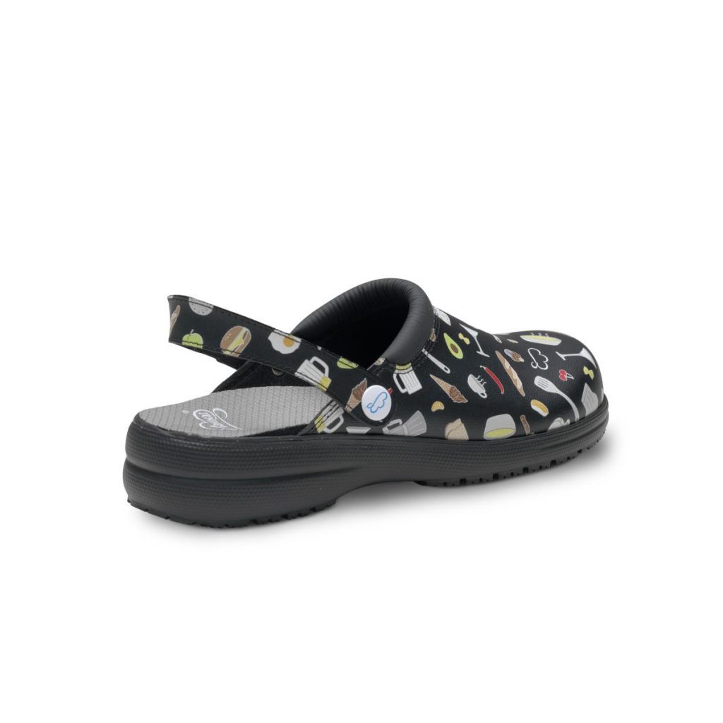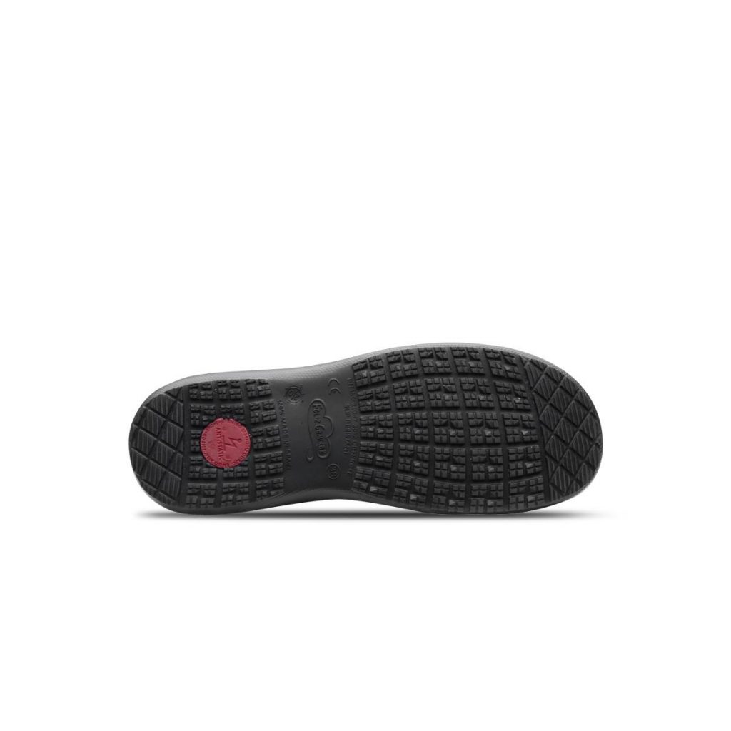 Gastro obuv Mycrom černá antistatická, protiskluzová OB + SRC + E + A. Protiskluzová podešev EVA Extralight umožňuje dokonalé anatomické a flexibilní přizpůsobení, lehkost a optimální přilnavost. Podešev EVA, stélka potažená kůží je antibakteriální a prodyšná. Pohodlné a prospěšné pro uživatele, kteří zůstávají na nohou po dlouhou dobu, snižuje svalovou únavu. Překlopný patní pásek se přizpůsobí patě. Materiál: nepromokavé a prodyšné mikrovlákno. Normy: EN ISO 20347:2012, OB+SRC+E+A (Úroveň ochrany a protiskluzovovosti). Značení: Podle charakteristik definovaných ve směrnici 89/686 EHS (OOP).